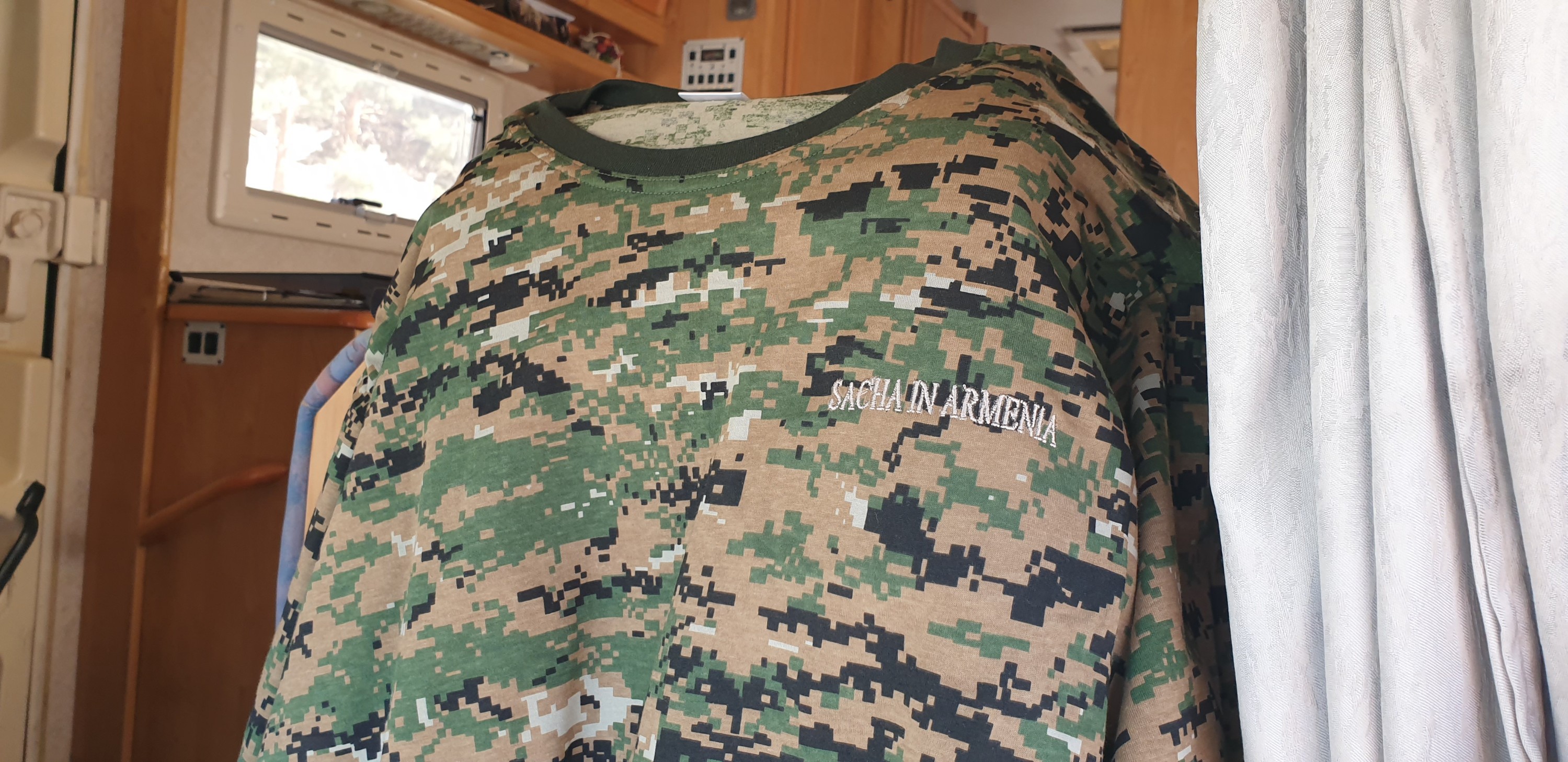 In meinem Lieblings Armeeladen gehe ich wieder zu Nadin? und frage nach THemden. Für 3,50€ gibts sogar ein gewebten Namenszug 😉