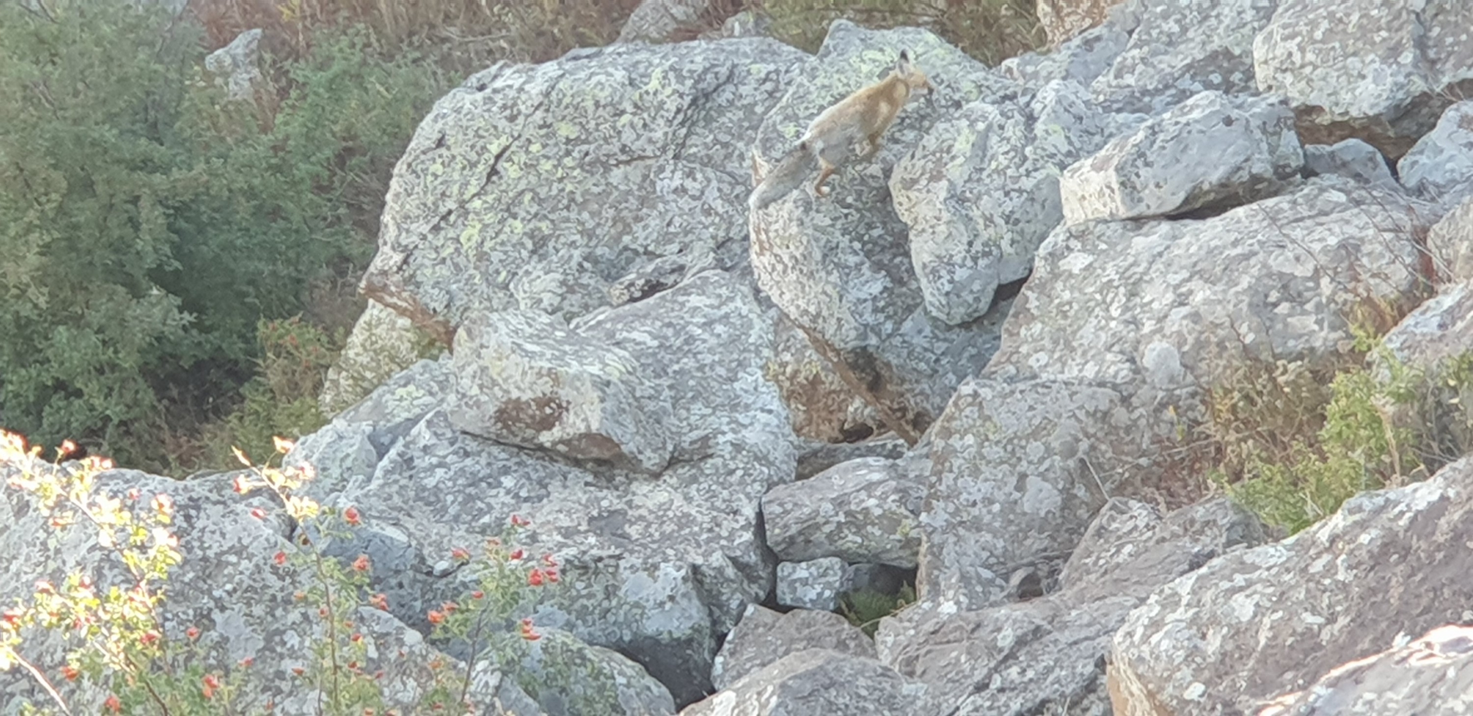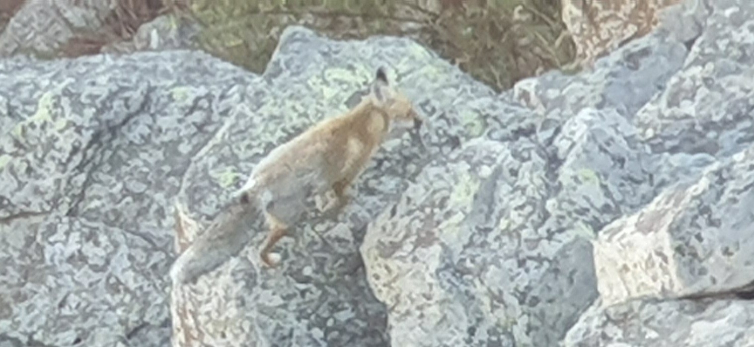 Beim Blick in das Tal fällt mir etwas bewegliches auf. Beim genaueren Hinsehen ist es ein Fuchs.
