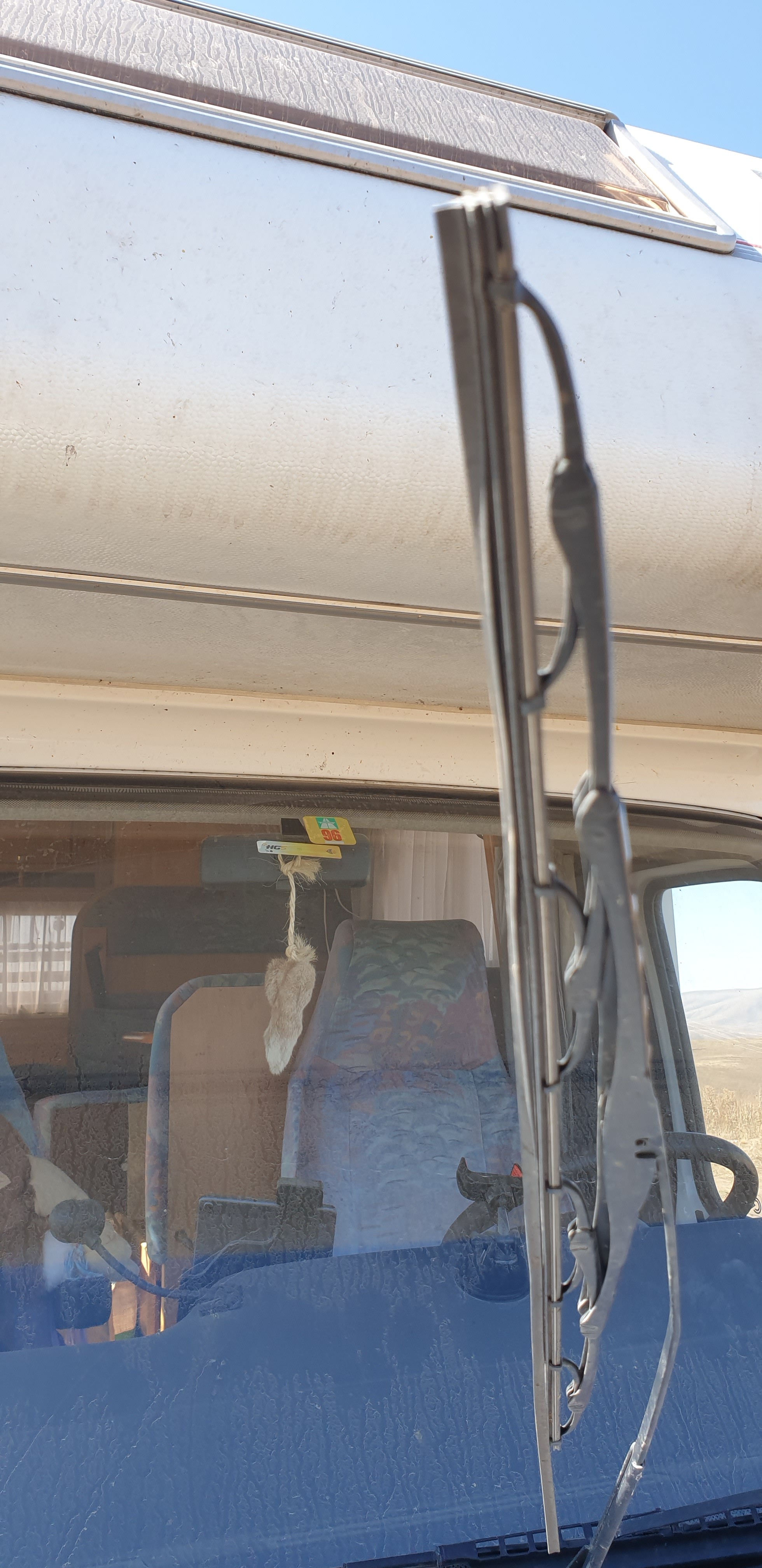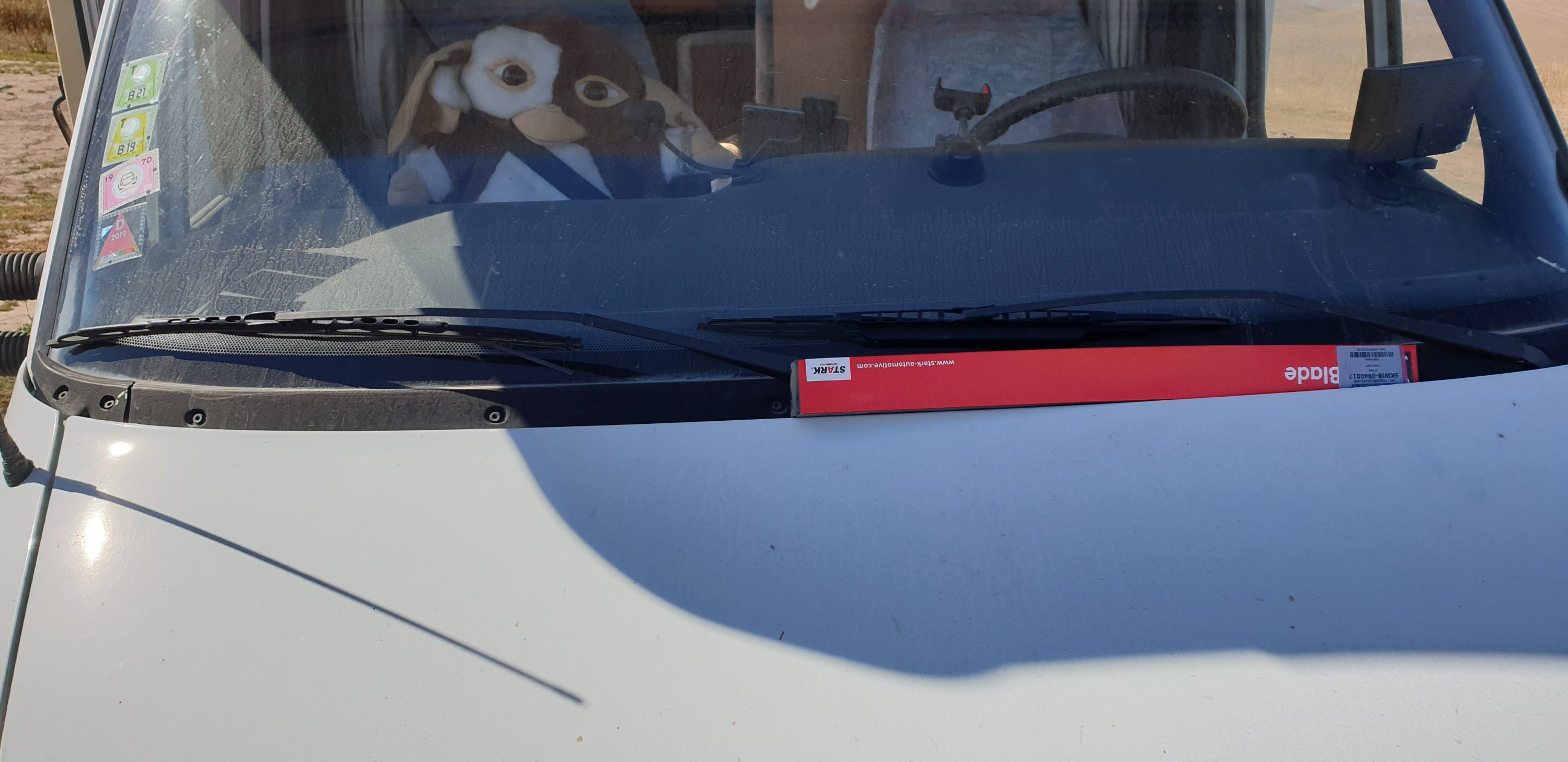 Der Scheibenwischer auf der Beifahrerseite ist seit längerem eingerissen. Da ich ja genügend Ersatz dabei habe, beschließe ich den Beifahrerwischer zu tauschen.